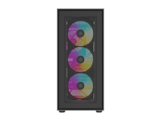 • Pre-Installed ARGB Fans with Full Lighting Control: Comes with 4*120mm ARGB fans at the front and one at the rear, delivering powerful airflow and vibrant, customizable lighting that syncs with major motherboard RGB software.