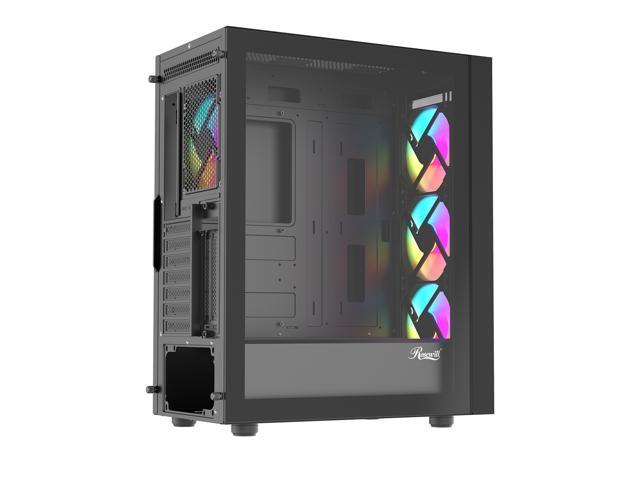 Rosewill ACA504B ATX Mid-Tower PC Case - Mesh Front, Tempered Glass, 4 ARGB Fans, USB 3.0, Supports Vertical GPU Mounting