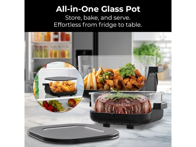 • All-in-One Glass Pot with Dual Handles: The 5.5QT glass pot is perfectly sized for family meals or party snacks, and serve up to 6 people. Both the main unit and the glass pot feature easy-grip handles for safe carrying from cooker to table. The lid also allows the pot to be used for convenient fridge storage - store, bake, and serve all in one container.