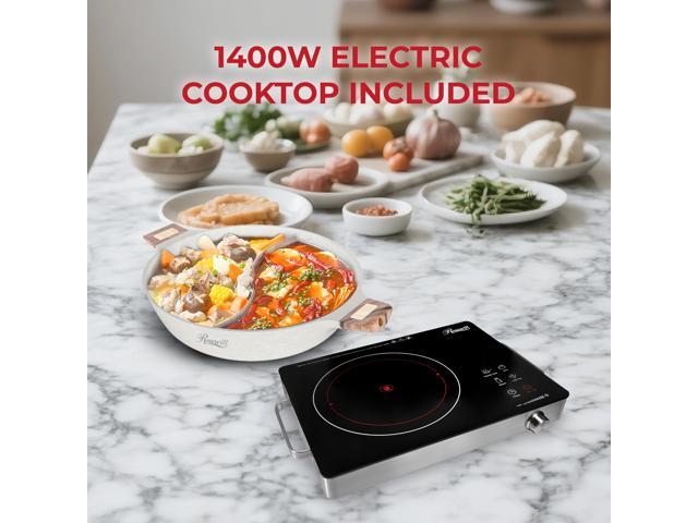 • Useful Accessories Included - The set comes with a Rosewill high-heat cooker along with a silicone soup spoon and spatula. The high-heat cooker is compatible with various pots including glass, cast iron, frying pans, and clay pots - making it versatile for both the dual hot pot and other cooking needs.