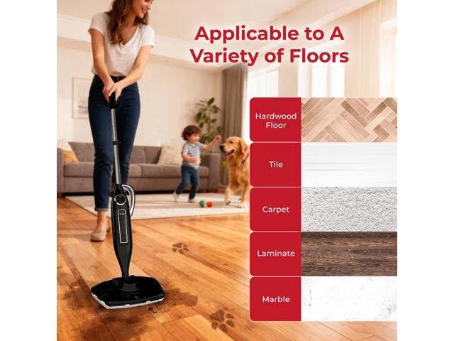 Rosewill Steam Mop Cleaner, RHSC-25001BK 266°F High Steam Deep Cleaning Removable Upgraded 20-ounce Large Water Tank Up to 45 minutes of use time Lightweight Body & 2 Adjustable Steam level 23-foot extra-long Power cord & scientific design Multi-purpose handheld steam cleaner